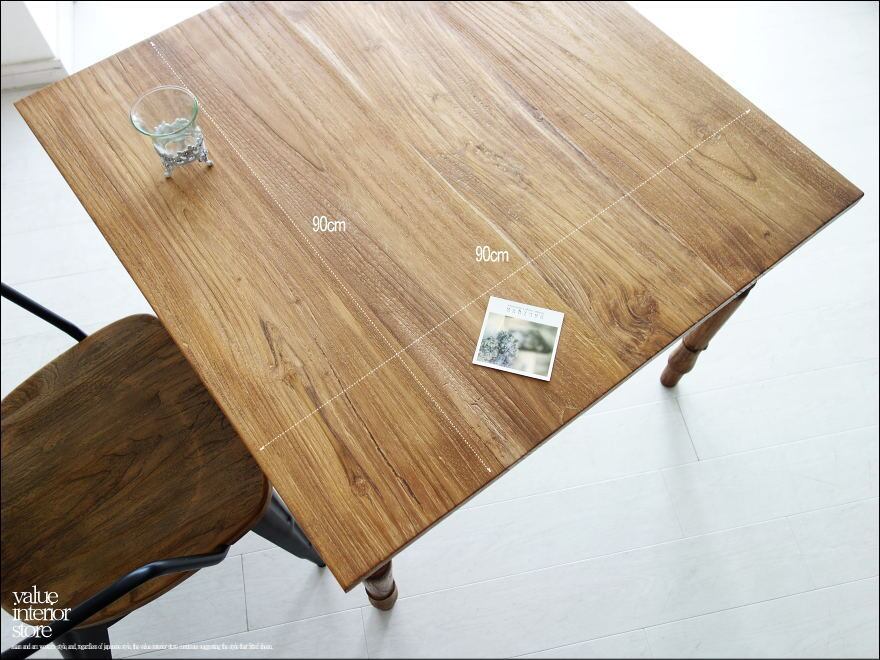 オールドチークカフェテーブルLN ダイニングテーブル 机 手作り 天然木 木製 ナチュラル 銘木 総無垢 幅90cm × 奥行き90cm