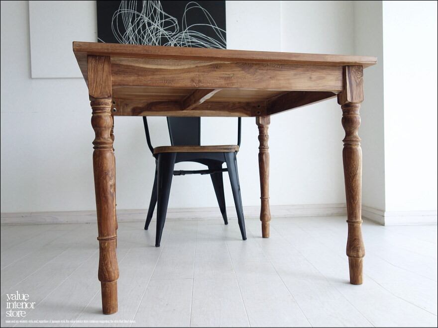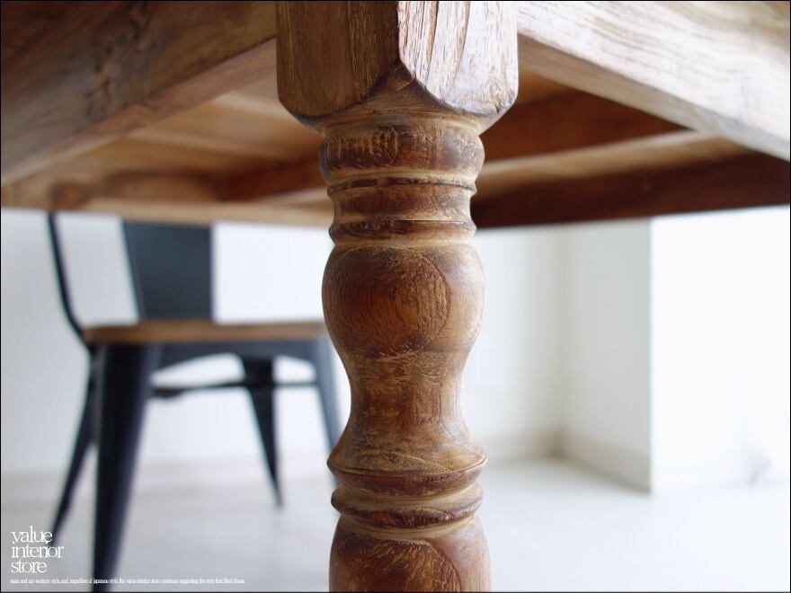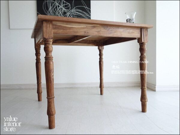 一目見ただけで木目の味わい深さを感じられるオールドチークのダイニングテーブル。
