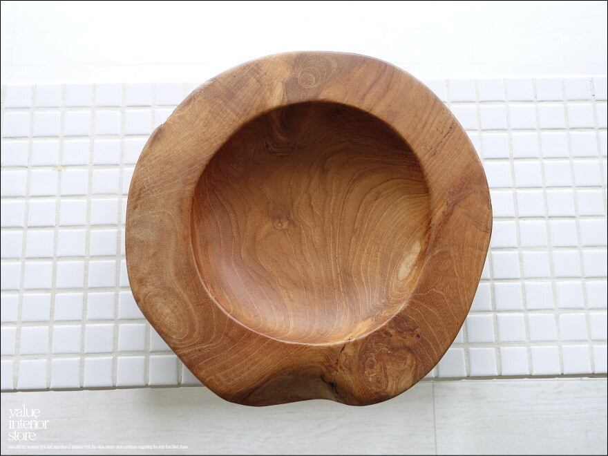 チーク無垢材 プリミティブオーバルトレイ / Φ29cm サラダボウル 入れ物 大型食器 自然な様 ナチュラル 世界三大銘木