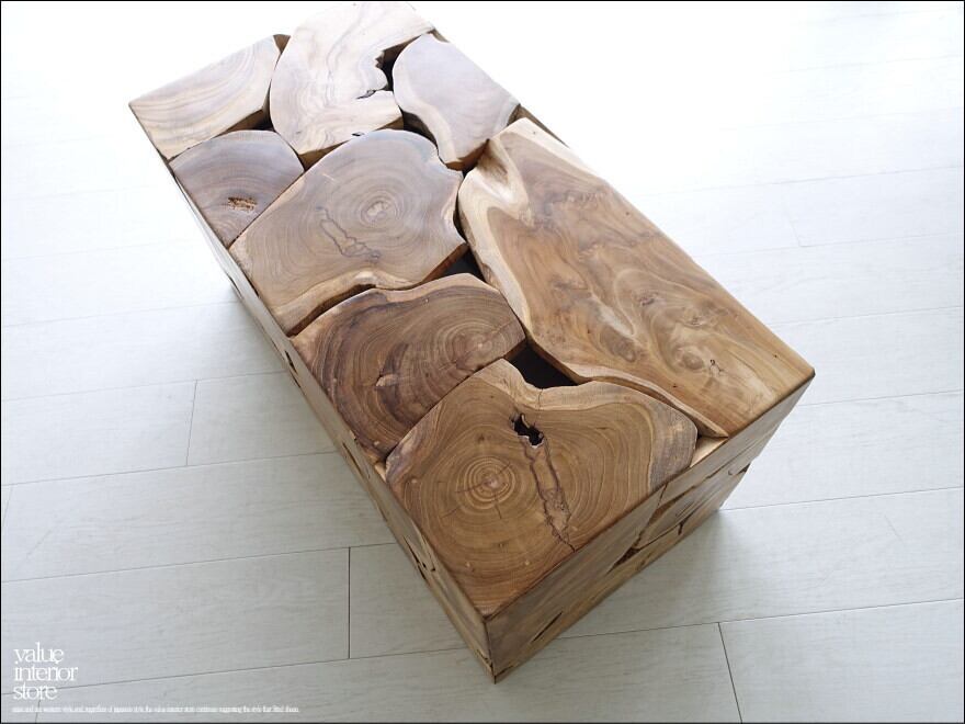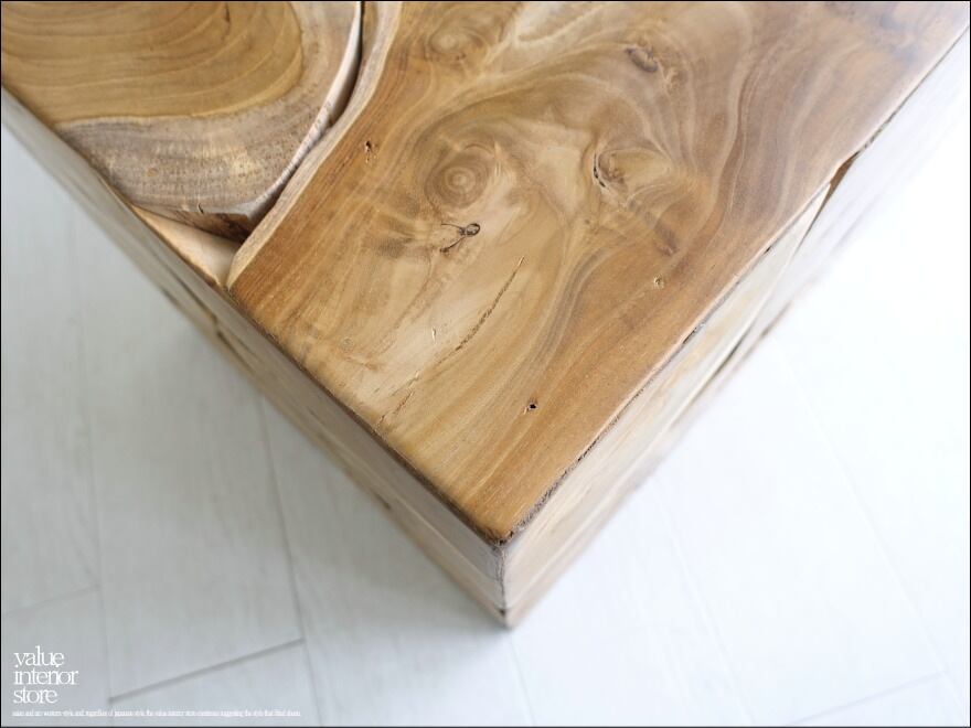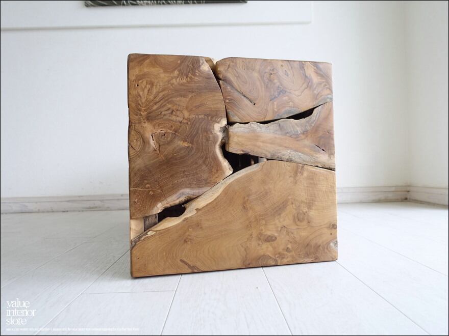 チークをブロックのような形に組み合わせたデザインでインテリアとしても配置しやすく、椅子だけでなくディスプレイとして使っても素敵です。幅広いインテリアにも馴染み、ナチュラルで素朴な雰囲気もお楽しみいただけます。ぜひこの機会にどうぞ。