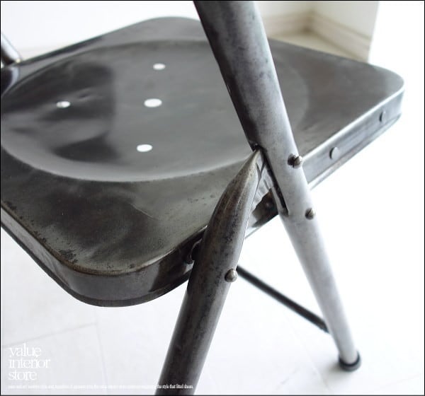 アイアンフォールディングチェア イス 椅子 折りたたみチェアー 折りたたみ椅子 工業系スツール 鉄 スチールチェアー ユーズドリメイク家具