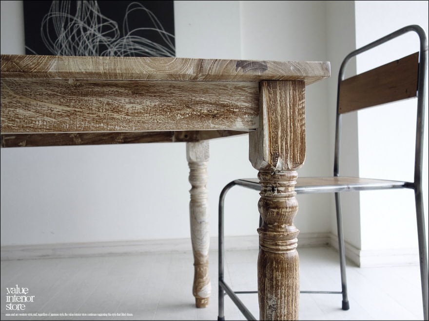 ※商品はオールドチークダイニングテーブルLWW 90cm×1点です。その他(イス・小物など)はイメージです。