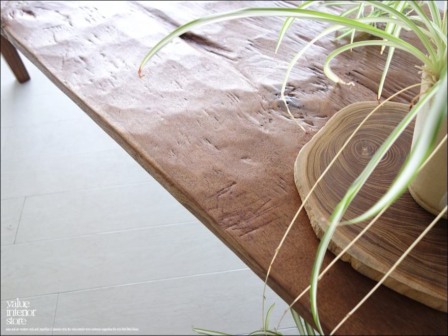 一枚板で十分に厚みのある天板、木目も大変美しく堂々とした印象を受けます。