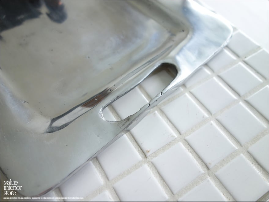 ・一つ一つ方にはめて作られたステンレストレイ。手作り感に溢れています。