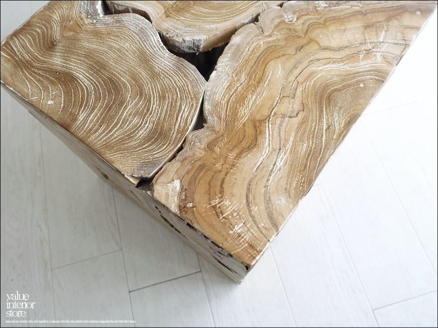 チークをブロックのような形に組み合わせたデザインでインテリアとしても配置しやすく、椅子だけでなく花台として使っても素敵です。ホワイトの塗装を施してから磨き削ることで、木目に程よくホワイトが入り込む独特な風合い。表面加工にもとても手間を掛けたお品です。幅広いインテリアにも馴染み、ペースダウンした雰囲気も存分にお楽しみいただけますよ。ぜひこの機会にどうぞ。