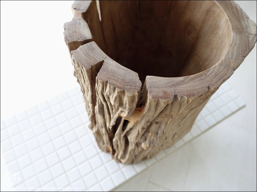 自然な様をそのままに削り出して製作したオールドチーク総無垢材のプランツカバー。個性的で硬く荒々しいチーク材独特の表情が魅力的です。そのままでもオブジェとしてもお楽しみいただけますが、植物とアレンジしていただくことで一層癒しの雰囲気づくりにお役立ていただけます。
