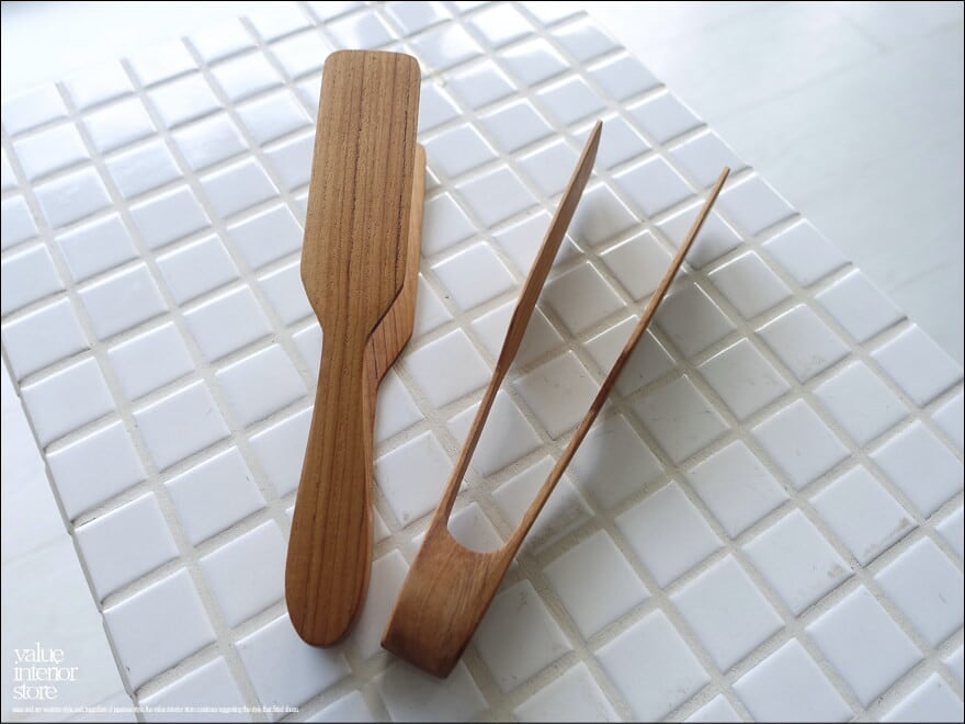 素材の持つ油分が木肌に独特なコントラストつくるチーク無垢材のトング。根元を貼り合わせることなく一つの素材より削り出していますので、しなやかな弾力で、とても軽くて滑らかな仕上がりになっていて手によく馴染みます。表面はミネラルオイル(ライム油・大豆油・チョウジ油・ナツメグ油)仕上げ。(食品等輸入届出書提出済)