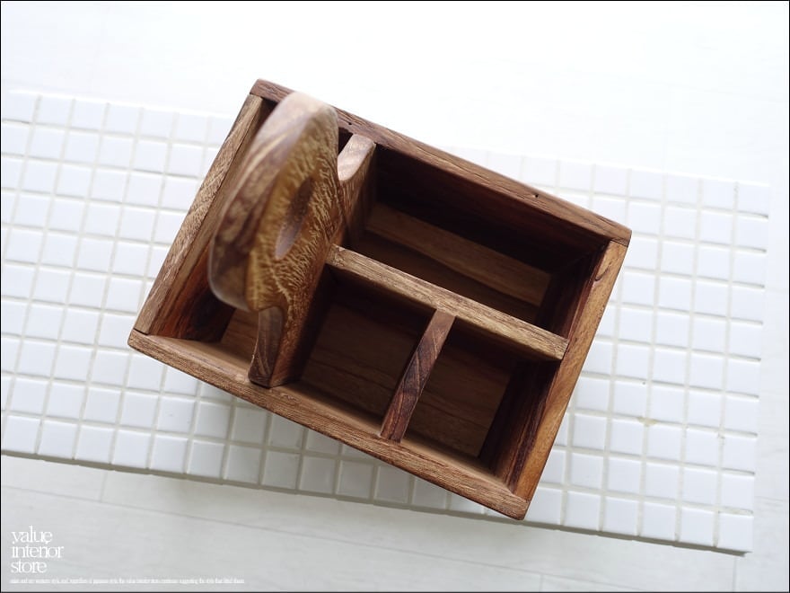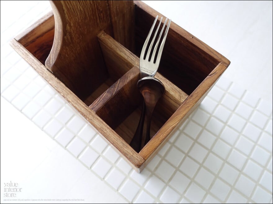小さな素材も余すことないように製作する心から生まれたチークマルチホルダー。古材独特の色合いと個性的な木目を活かし魅力的に仕上がっています。中は仕切られていますのでお箸とカトラリーを分けて収納いただいたり、キッチンではフライ返しやお玉を立てて収納いただけます。またリビングではリモコン入れにもぜひお使いください。