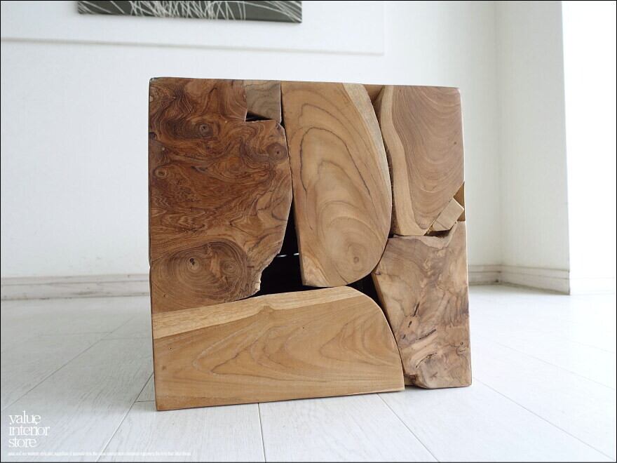 チークをブロックのような形に組み合わせたデザインでインテリアとしても配置しやすく、椅子だけでなくディスプレイとして使っても素敵です。幅広いインテリアにも馴染み、ナチュラルで素朴な雰囲気もお楽しみいただけます。ぜひこの機会にどうぞ。
