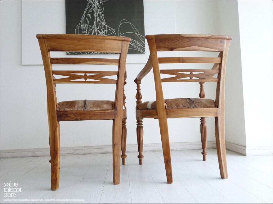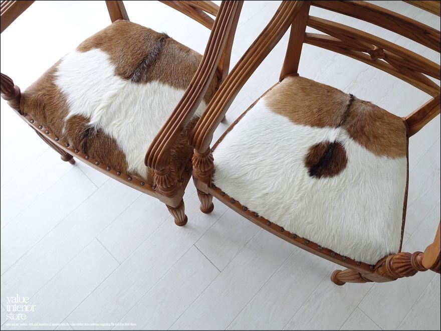 「 Sさま ご予約商品 」チークレザーアームチェアfurputi×2脚 ダイニングチェア 肘掛けイス 椅子 毛皮張り レザーチェア 本皮 シングルソファ 無垢材家具 ナチュラル