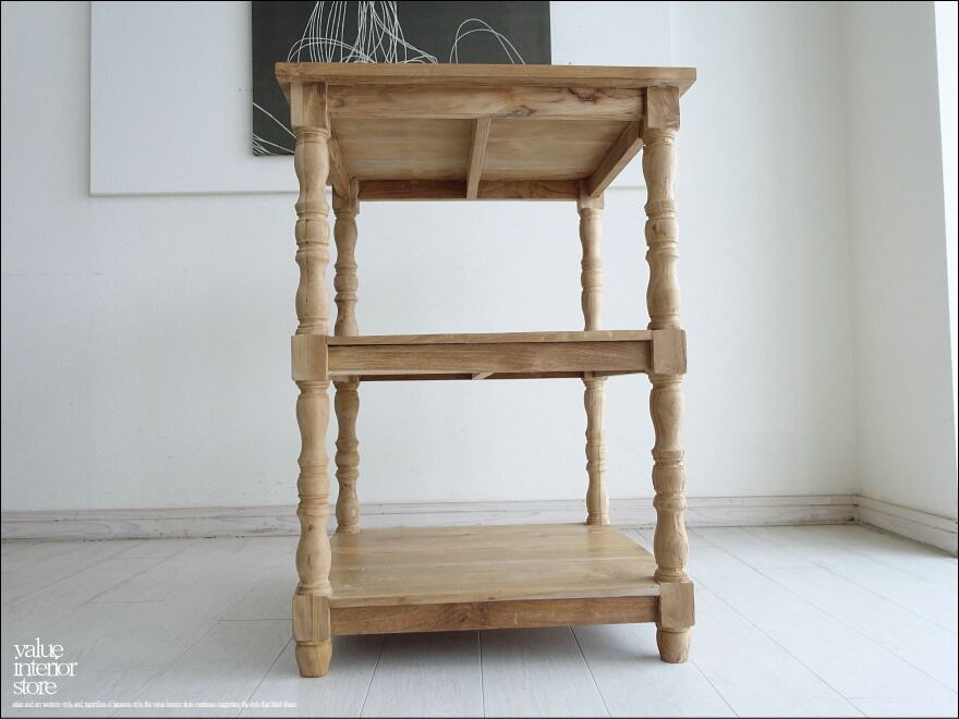 ナチュラルで素朴な質感は、経年変化でいわゆるチーク色へ徐々に変化していくところも楽しみの一つです。余分な装飾を無くしたシンプルな棚板と、丸く柔らかな印象の脚とのバランスがとってもかわいいですよ♪