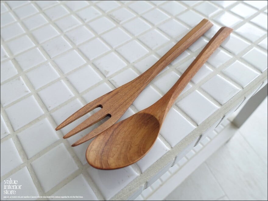 無垢材 スプーン フォーク 「二本一組セット」 ディナースプーン ディナーフォーク 木製カトラリー 手作り 本チーク 約18.5cm wssp