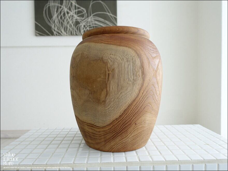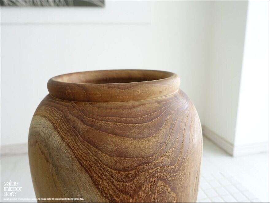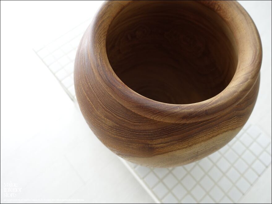 木工旋盤で削り出して、表面は木目を起こす無垢材を際立たせた仕上げのチークプランツカバー。ナチュラルな変化に富んだ木肌が素敵でチーク材独特の魅力に溢れています。植物とアレンジしていただくことで一層癒しの雰囲気づくりにお役立ていただけます。